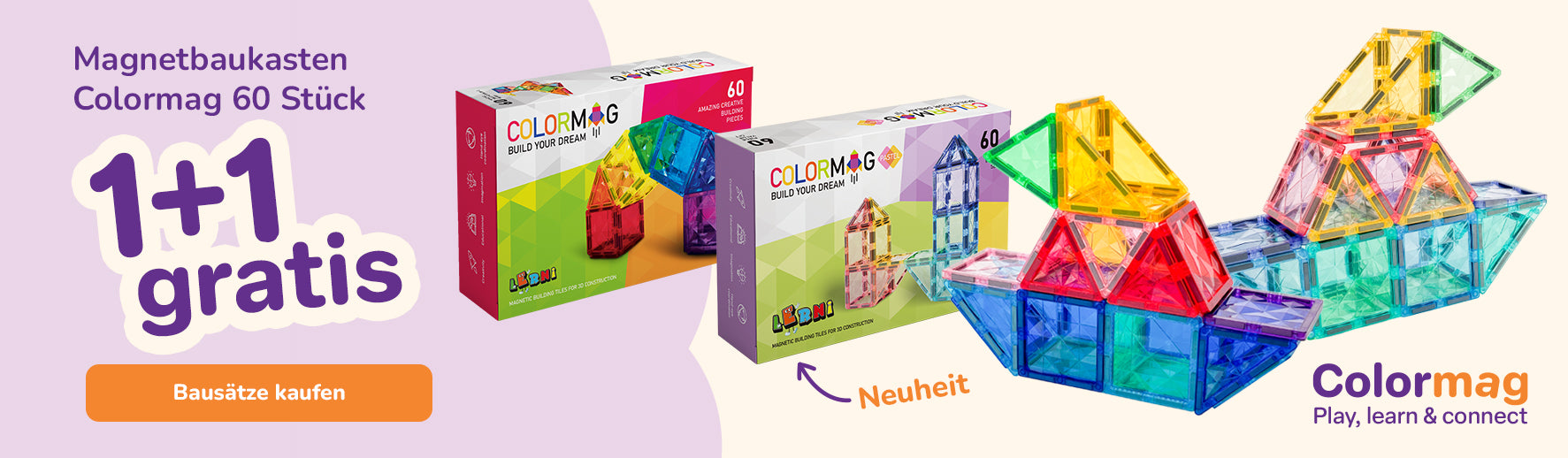 Magnetbaukasten COLORMAG 60 Stück - pastel