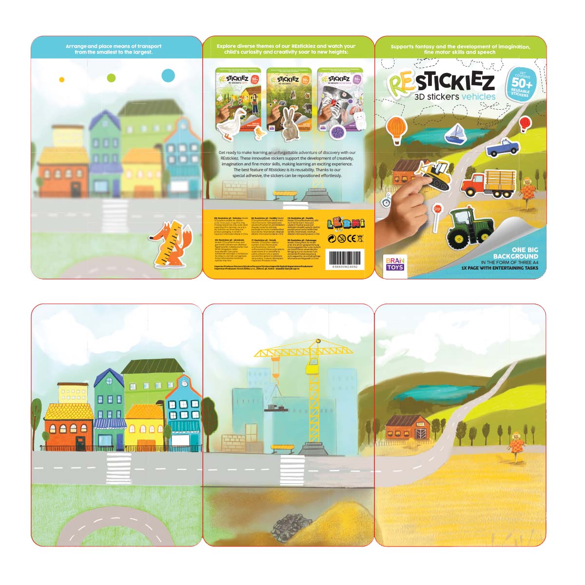 Tauche ein in eine Welt voller Spaß und Entdeckung mit 3D REstickiez! Diese innovativen, wiederverwendbaren 3D-Sticker bieten Kindern eine spannende Möglichkeit, die dynamische Welt der Fahrzeuge zu erkunden und gleichzeitig ihre Kreativität zu fördern. Perfekt für praktisches Lernen, hilft dieses Set den Kindern, verschiedene Fahrzeugtypen auf interaktive Weise zu verstehen.